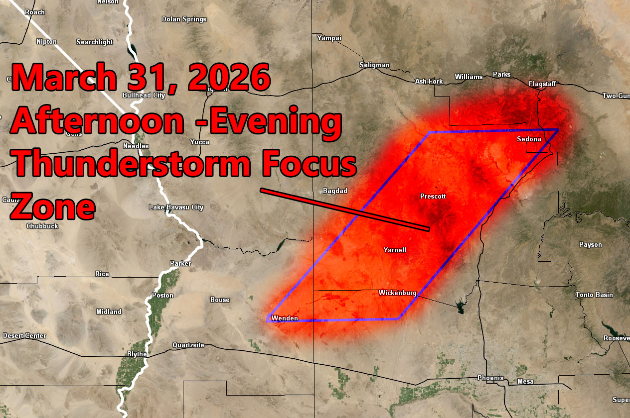 Cold-Front To Zip Through Arizona Today into Wednesday Morning; Yavapai County, Including Prescott Under Thunderstorm Watch; Zoom in Maps inside