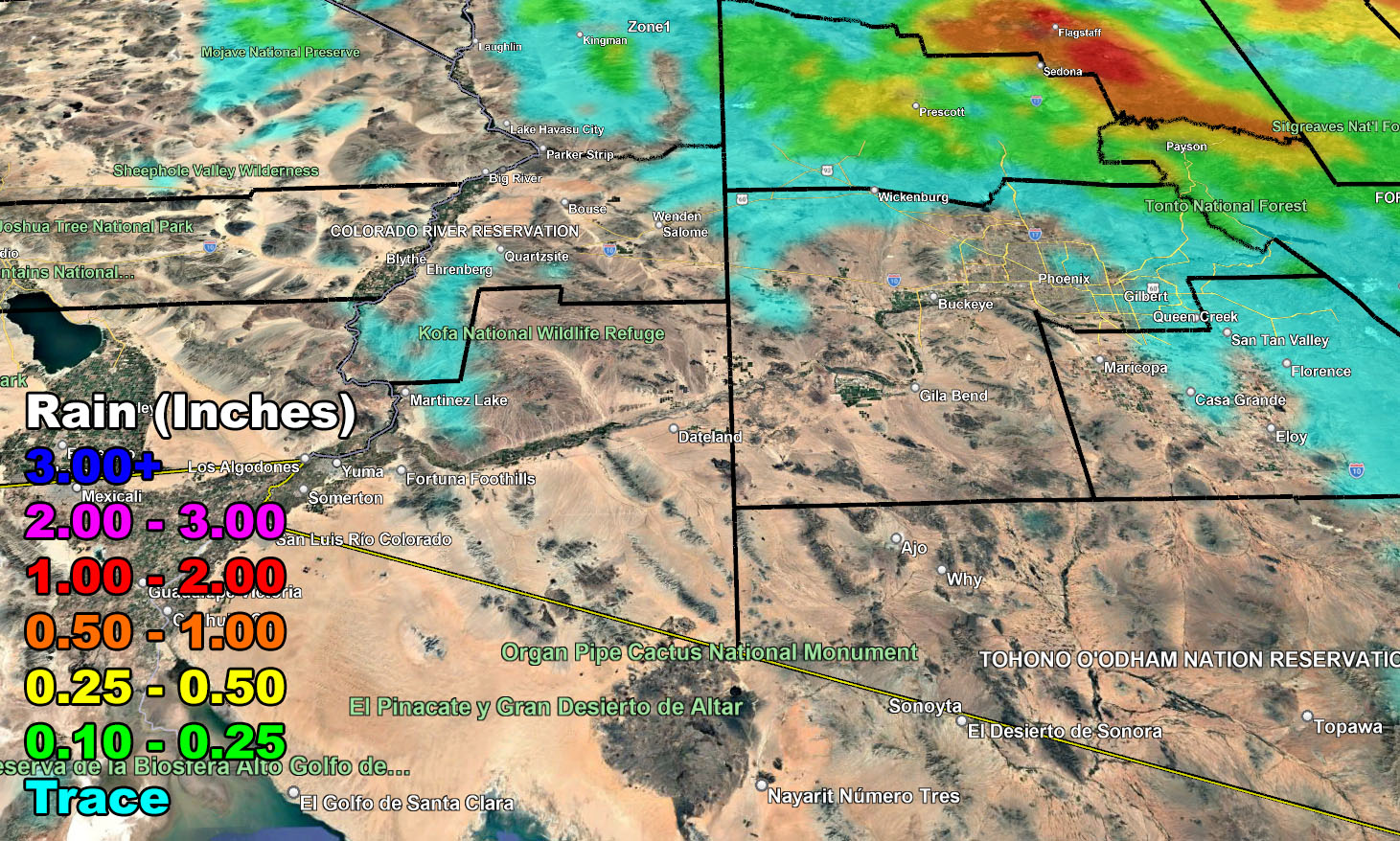 The main cold-front will hit overnight and into early Wednesday morning for the state.  Given this is rather moisture starved, only very light amounts will be expected in the metros of Phoenix and Tucson, as clearly seen on the maps.  This is a highly terrain based system, where the higher terrain and Rim Country will see more.  Good for the fire situation in the short term, but we do need more storms before the peak season hits, which will be later May into June this year.